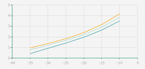 | 蒸發(fā)溫度 | 制冷量+/-5% | 能耗+/-5% | 現(xiàn)在能效+/-5% | 氣體流速+/-5% | 能效+/-7% | ||||