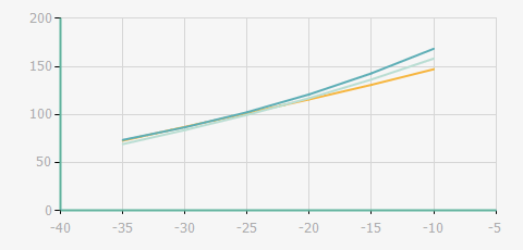 | 蒸發(fā)溫度 | 制冷量+/-5% | 能耗+/-5% | 現(xiàn)在能效+/-5% | 氣體流速+/-5% | 能效+/-7% | ||||